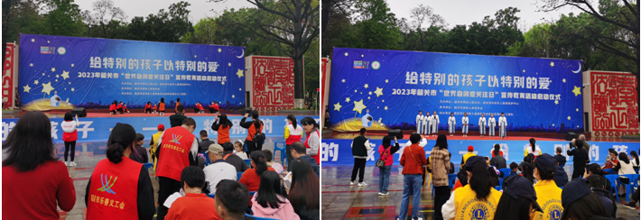 這天,在韶關市中山公園,開啟“走近星星的孩子—給特別的孩子以特別的愛” 2023年韶關市“世界自閉癥關注日”宣傳教育活動啟動儀式,現場有自閉癥兒童表演節目、現場派發藍絲帶、及自閉癥康復治療宣傳等相關活動、游戲。