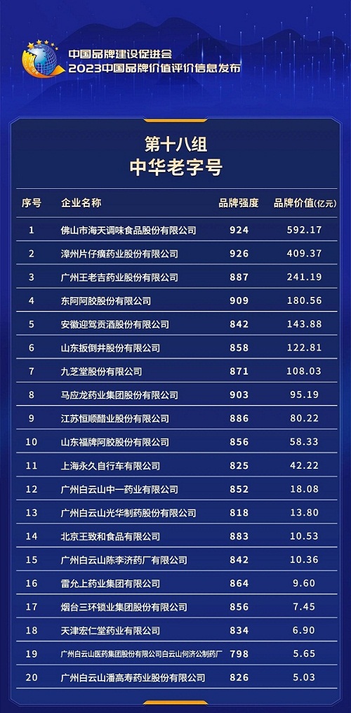 2023中國品牌價值評價信息發布:廣藥集團位居榜首、王老吉品牌位列第三