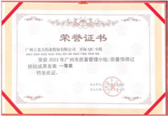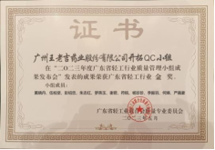 通過現場匯報,經專家評委組評審、點評,該課題在127個課題中脫穎而出,榮獲廣州市質量管理小組成果發表“一等獎”佳績。此外,該項QC成果也榮獲廣東省輕工行業質量管理小組成果“金獎”。