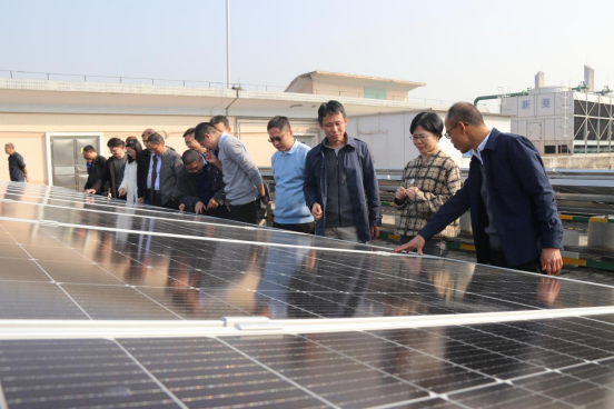 隨后,黃曉丹、肖義祥領銜雙方項目組成員移步到并網電箱前舉行并網儀式,共同見證了光伏發電項目竣工并網。在一片歡樂的掌聲中,隨著操作人員按下并網按鈕,王老吉藥業廠部車間正式用上了綠色電能。接著,雙方人員走到制劑車間屋頂光伏板現場,深入交流了光伏板的結構、鋪設安裝及發電情況。