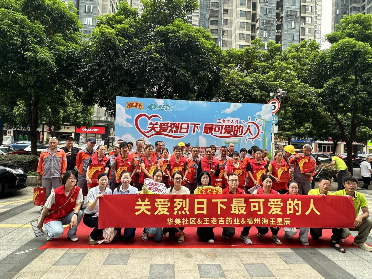 7 月 17 日,廣州王老吉藥業(yè)福建區(qū)攜手王莊街道華美社區(qū)、福州海王星辰健康連鎖藥房,聯(lián)合舉辦 “關(guān)愛烈日下最可愛的人” 主題活動(dòng)。 -