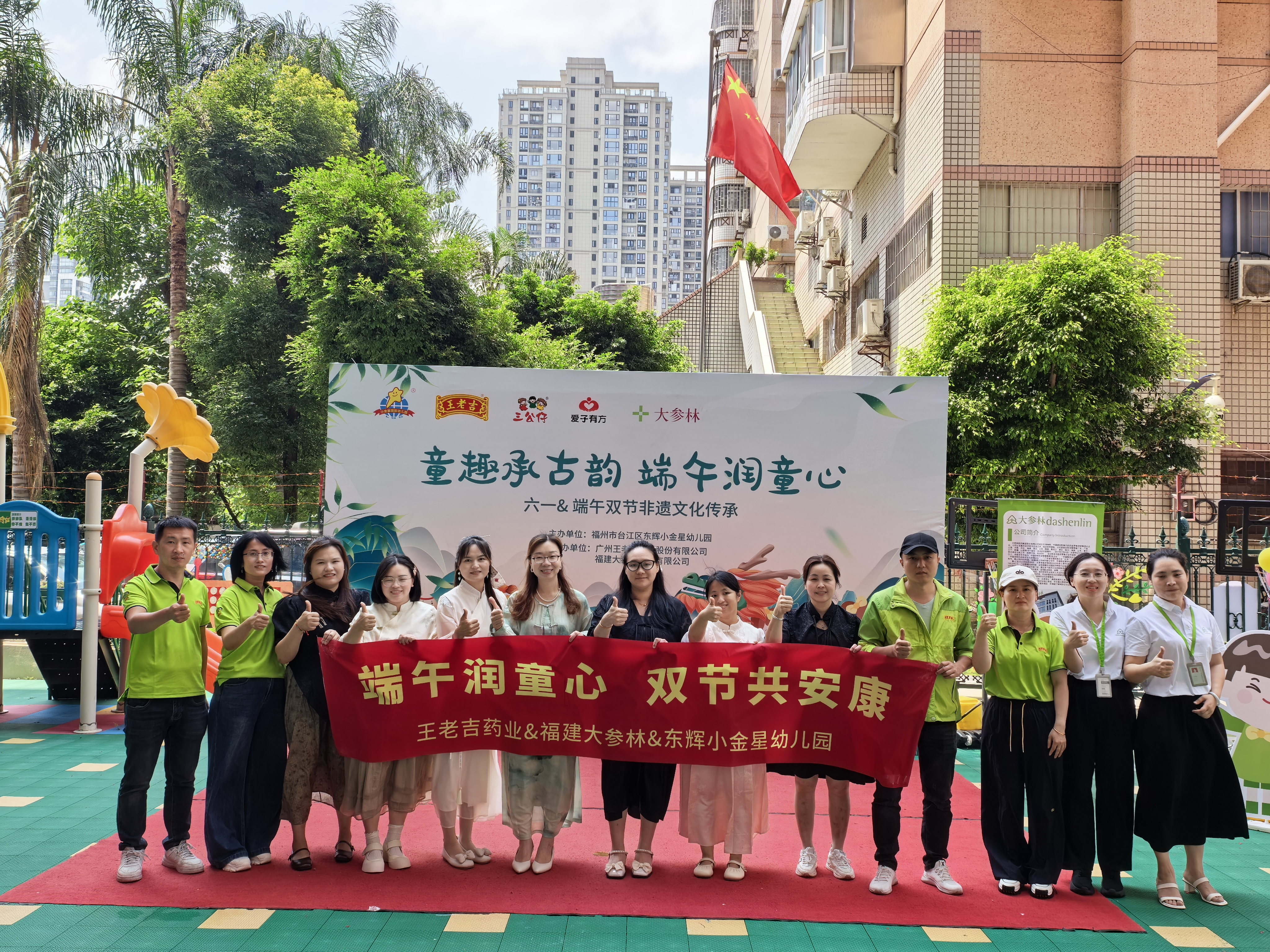 王老吉藥業攜手大參林福州區域,在福州市小金星東輝幼兒園共同舉辦 “童趣承谷韻 端午潤童心” 端午六一主題活動。 -