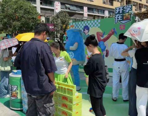 王老吉食品華中湘南辦聯合菜鳥驛站高校區校內站點聯合開展了驛站廣宣發布,學院社團招新活動互動 -
