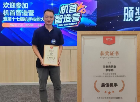 機“首”智造營暨第十七屆機手技能大賽在僅一公司舉行,共計12家藥企受邀參加。我司選派2名維修技術骨干參賽,其中李華師榮獲了“最佳機手”稱號,同時為我司獲得3千元的備件儲備金。 -