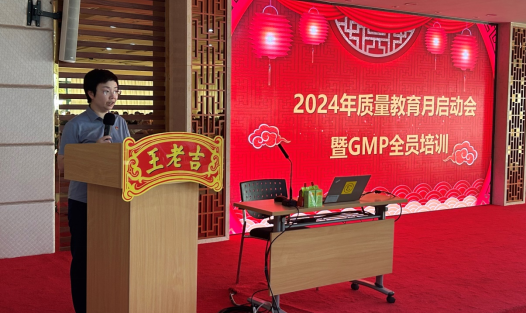 2024年王老吉藥業質量教育月啟動會暨GMP全員培訓在公司吉園二樓會議室隆重召開。公司紀委書記李玉婷、質量受權人許麗芬等領導出席,藥品質量部、生產技術部、生產技術中心一線員工,包括質量管理崗、生產管理崗、工藝管理崗、工程管理崗、QA、QC、研發人員、倉庫管理崗等150多人參加。